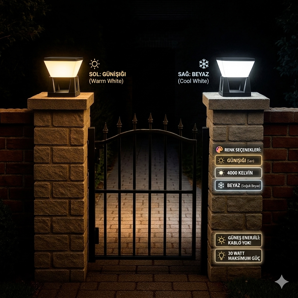 30W Güneş Enerjili 3 Renk Fonksiyonlu Bahçe Aydınlatma Dış Mekan Aydınlatması Solar Bahçe Armatür Küp