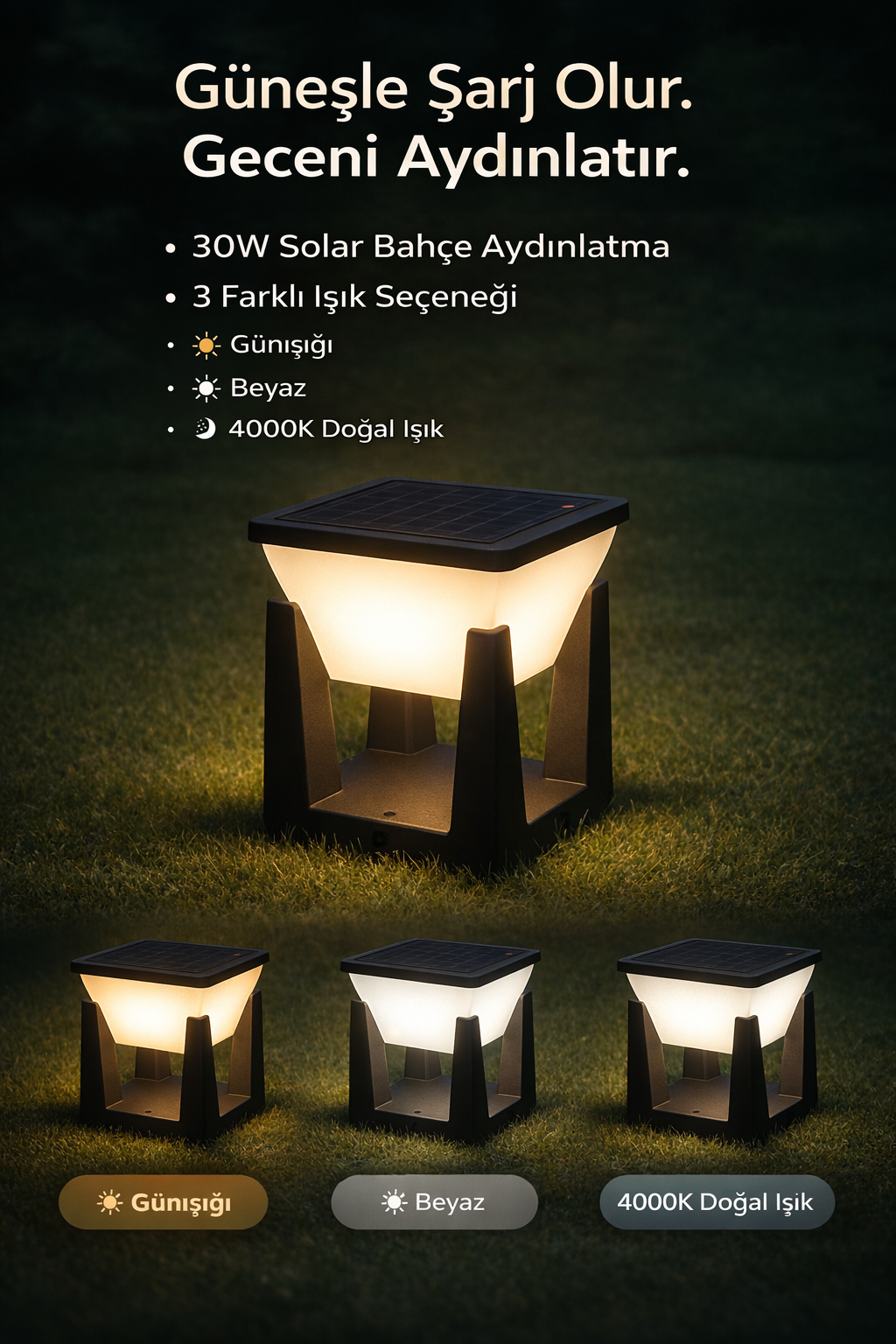 30W Solar Bahçe Ters Küp 3 Fonksiyon