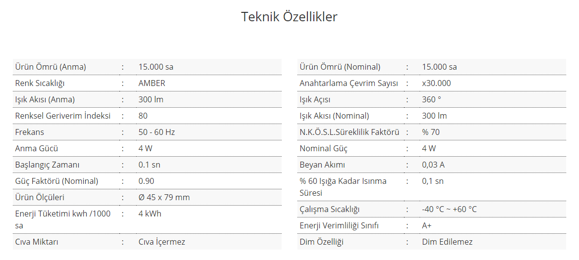 Ürün Özellikleri